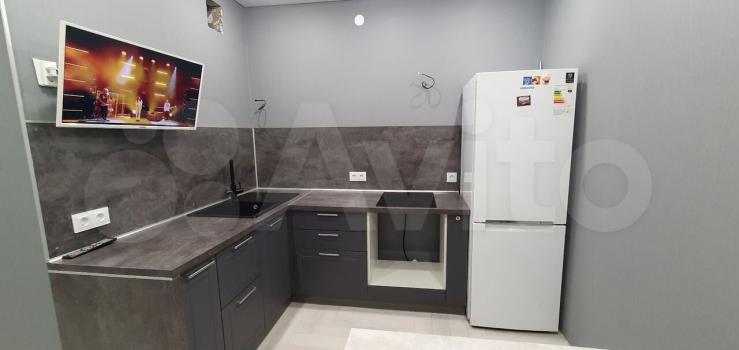 Кухня совмещены с комнатой, на кухне есть вся необходимая техника (чайник и холодильник до купим в ближайшее время)
