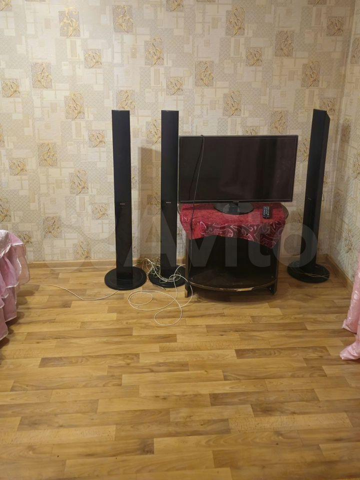 В квартире выполнен косметический ремонт. Комнаты смежные, что обеспечивает дополнительное пространство. В гостиной установлен телевизор и диван, а также имеется удобный угловой шкаф. В спальне — большая кровать и вместительный шкаф.