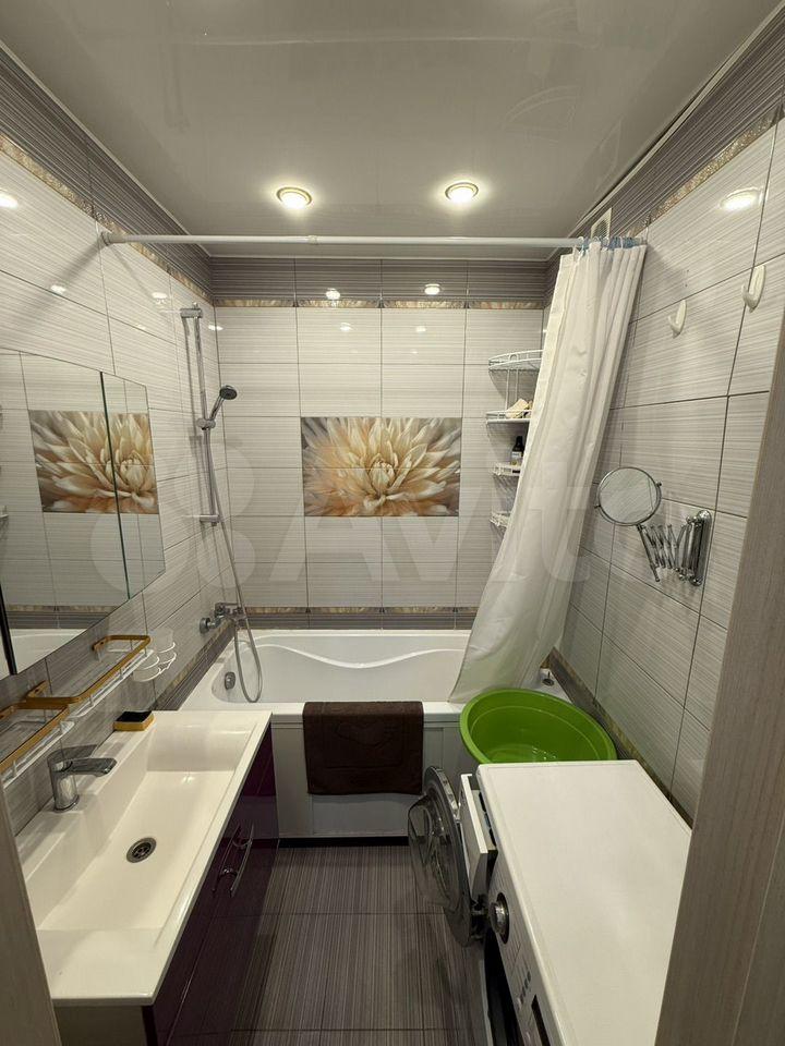 В квартире три комнаты. В каждой комнате имеется вся необходимая для жизни мебель. Кухня оборудована большим холодильником, эл.плитой и вытяжкой, посудомоечной машиной, микроволновой печью. С/у совмещен (установлена стиральная машина).