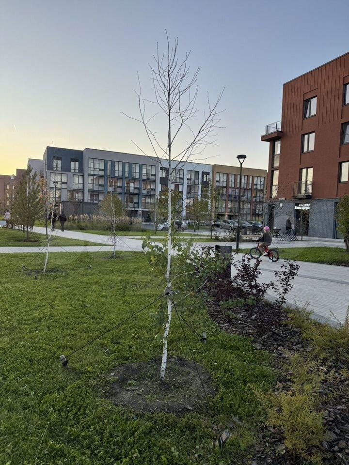 Из преимуществ, во дворе дома находится детский сад, что будет плюсом для семьи с детьми. А поблизости также имеется большой сосновый парк (Экопарк), в котором можно как проводить время отдыха, так и заниматься спортом.