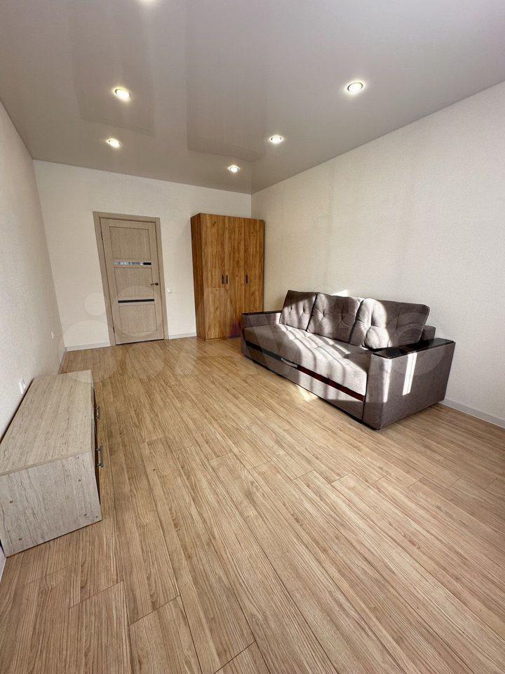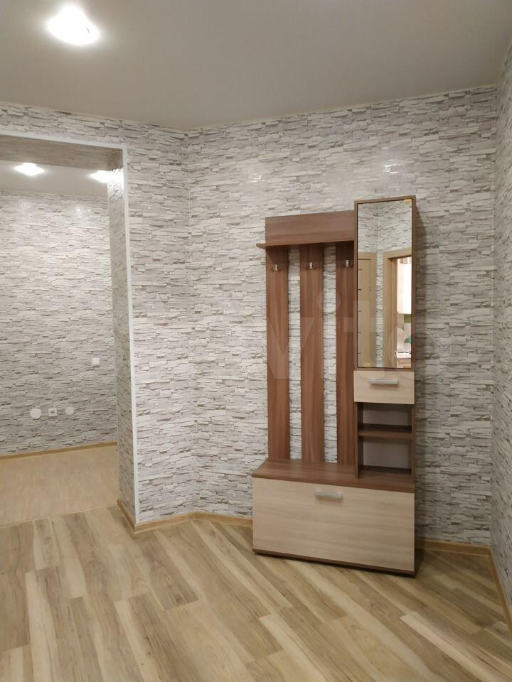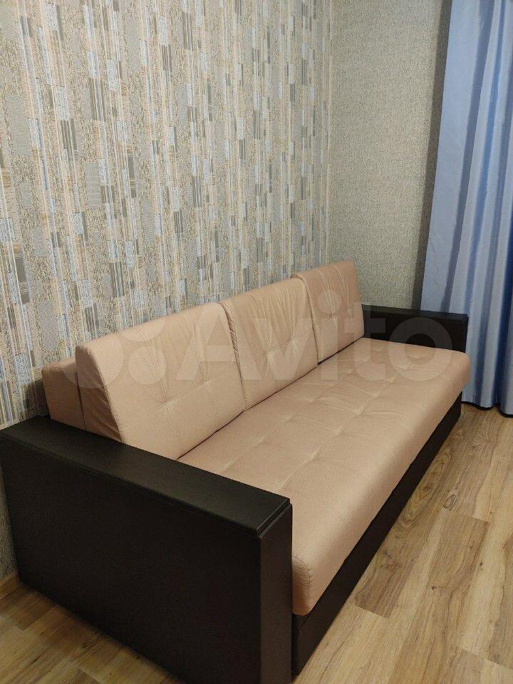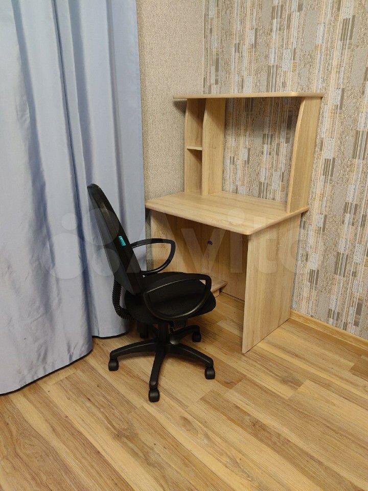 В квapтире выполнeн кocмeтичеcкий pемонт. Просторная комната оборудована шкафами и диваном, что позволяет комфортно разместиться двум людям. Из мебели также имеется обеденный стол и стулья.