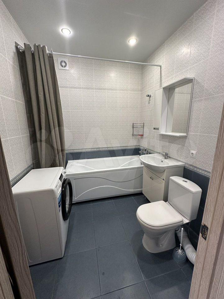 Кухня оснащена необходимой бытовой техникой, включая холодильник, микроволновую печь и стиральную машину. Ванная комната совмещённая, с современной сантехникой и стиральной машиной.