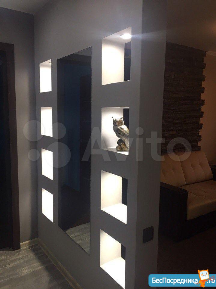 Квартира угловая с 2мя окнами, что позволило поставить стену из гипсокартона и разделить комнату, выделив полноценную спальню с кровать 140*200