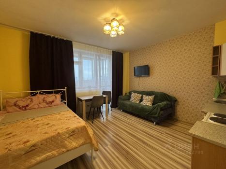 Собственник. Студия в хорошем состоянии. В квартире сделан клининг. Есть диван, кровать, телевизор смарт, холодильник, эл.плита с духовым шкафом, микроволновка, стол обеденный, шкаф, сушилка для белья, гладильная доска, утюг, посуда. Сдаётся одному человеку или семейной паре, не курящим без детей и животных. Залог 7000. Эл-во и вода оплачивается по счётчикам отдельно. Возможна аренда на месяц, но по другой цене