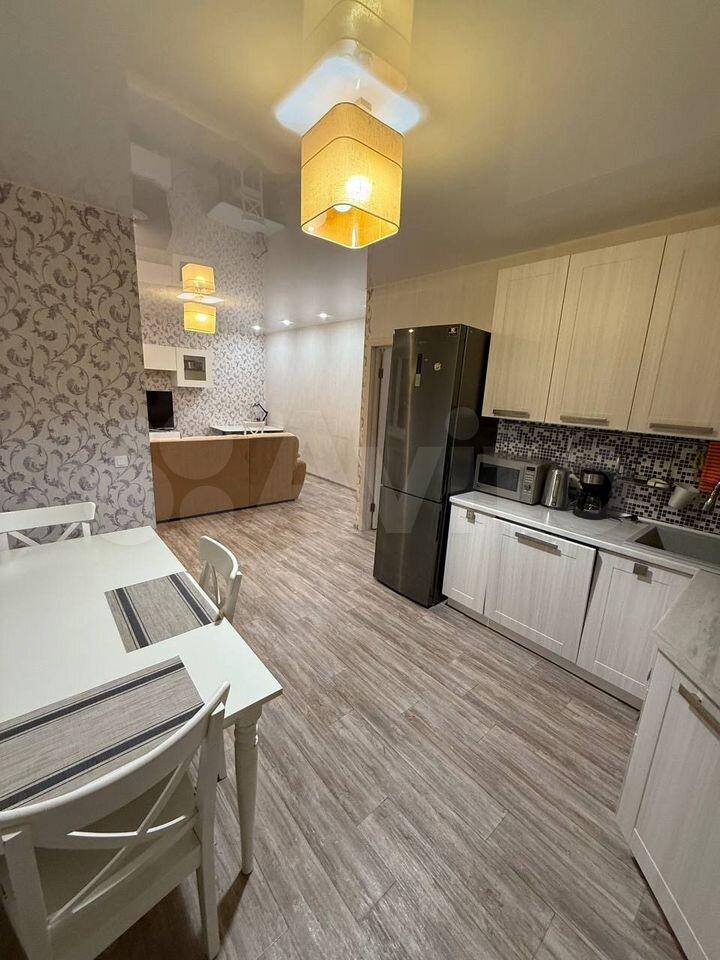 В квартире есть вся необходимая техника: холодильник и стиральная машина, а также мебель как на кухне, так и в комнате, что делает её полностью готовой для комфортного проживания.