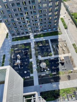 Квартира расположена на 3 этаже из 24, в доме два пассажирских и один грузовой лифт. Во дворе оборудована спортивная площадка и открытая парковка. Курение запрещено, можно проживать с детьми, но без животных.