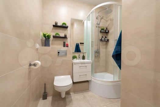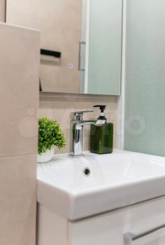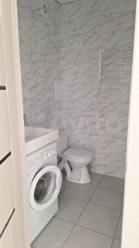 • Ванная комната с новой сантехникой, стиральной машиной и зеркалом с подсветкой