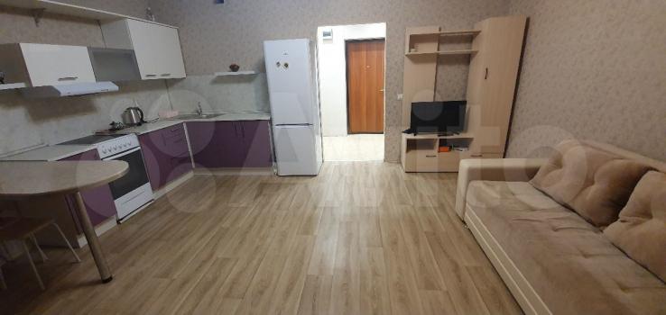 Сдам чистую и уютную студию с хорошим ремонтом в новом доме на длительный срок. Для удобного проживания есть вся необходимая мебель и бытовая техника. Балкон задействован под кухню. Благоустроенный двор: детская и спортивная площадка, большая парковка. В шаговой доступности школа и детский сад, остановка, магазины, поликлиника. Хорошая транспортная развязка.