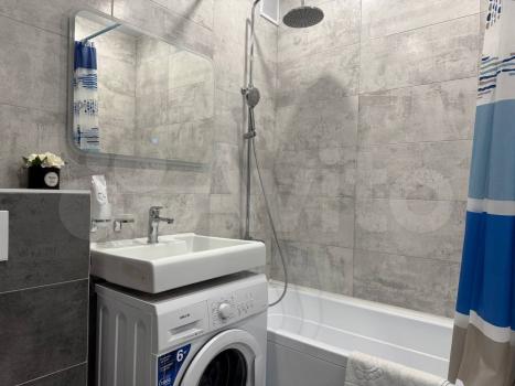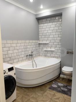 В квартире сделан дизайнерский ремонт, что создаёт атмосферу уюта и современности. Просторная кухня оборудована всей необходимой мебелью и техникой: холодильником, посудомоечной машиной и кондиционером. В комнате также есть мебель, включая место для отдыха и работы. Ванная комната оснащена ванной и стиральной машиной. Для вашего удобства предусмотрен телевизор.