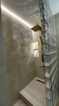 Ремонт выполнен из дорогих и качественных материалов: в санузле выложены 3д стеклоблоки с проекцией при попадании света, санузел и пол на балконе выложен керамогранитом, пол выложен кварцвинилом елочкой, плинтуса дюполимер выкрашены в цвет стен. В санузле организован ряд подсветок: парящий потолок, подсветка полочек, спот. На балконе поменяны рамы и стеклопакеты, утеплены стены.