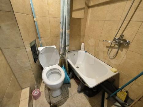Небольшая кухня расположена на присоединенной лоджии. Санузел совмещенный, оснащен ванной.