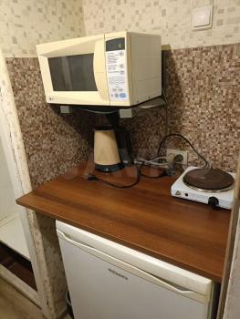 санузел - совмещённый, мебель - кухня, хранение одежды, спальные места, холодильник, плита, микроволновка, стиральная машина, водонагреватель, телевизор.