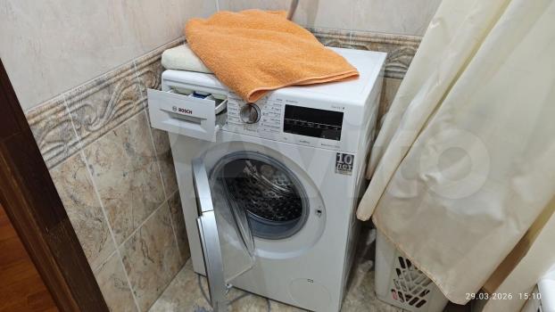 — Ванная комната: чистая сантехника, стиральная машина.